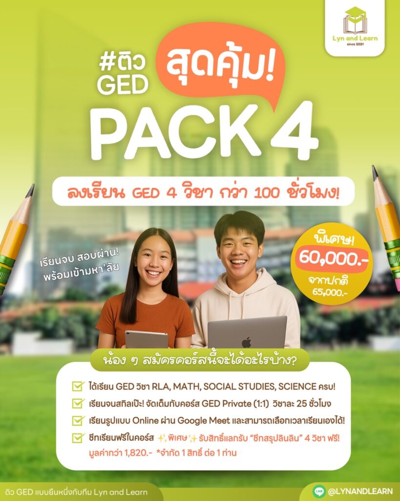 คอร์สของ Lyn and Learn ของเรามีให้เลือกมากมาย ตั้งแต่ชีทสรุปอ่านเอง ไปจนถึง Full Course สำหรับคนที่ต้องการเรียนรู้ตั้งแต่ 0 จนสามารถสอบ GED ได้อย่างมั่นใจ พี่ลินลินได้ทำคอร์สต่าง ๆ ขึ้นมาด้วยความใส่ใจ อยากให้น้อง ๆ ได้รับความรู้อย่างเต็มที่ ด้วยเทคนิคต่าง ๆ ชีทคำศัพท์ และเทคนิคต่าง ๆ อีกมากมายที่จะช่วยให้น้อง ๆ สามารถเรียนได้ง่ายมากยิ่งขึ้น